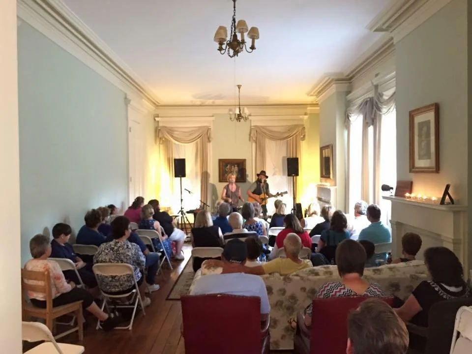 “Meet and greet” usually starts about an hour before showtime, with friends catching up, possibly sharing in a potluck dinner and, (depending on your comfort level) the beverage of their choice. Then we sit concert style for the first set, about 45 minutes or so, followed by a 20-30 minute break with more nibbles/beverages, and finish the evening with a second 45 minute set. All for a suggested donation of $10 to $15 per person (kids free). If your weekends are filled to the brim, you might consider an earlier, weeknight concert. These involve one set instead of two, with the “mingling” time after the show, which allows your friends to be home by 9:00 on a weeknight.